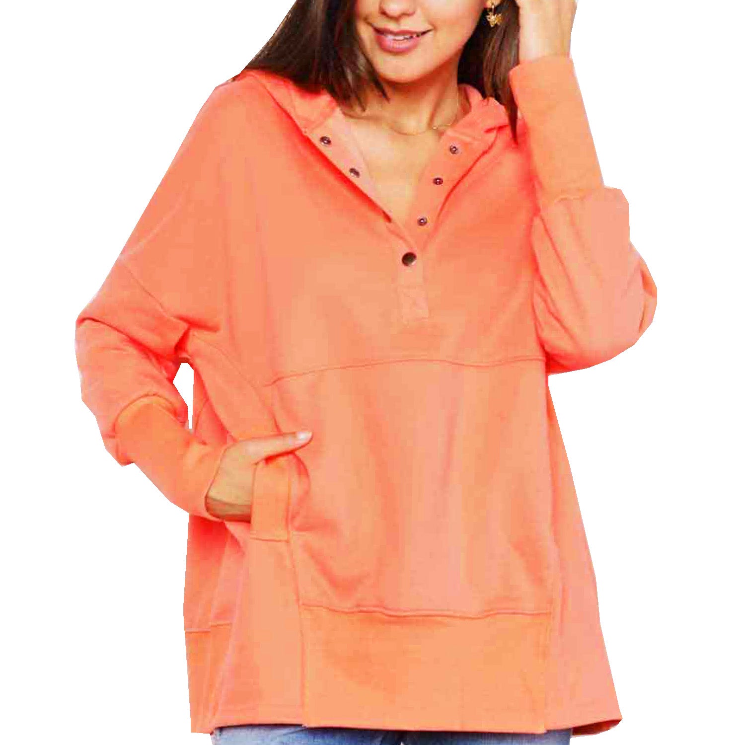 Womens Orange Quarter Snap Button Up Dropped Shoulder Hoodie Tunic