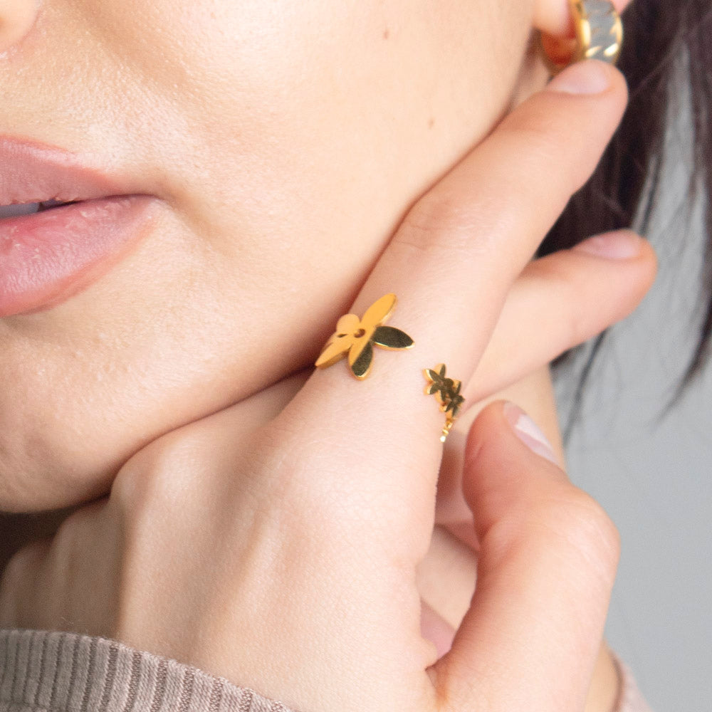 The Runner Island Plumeria Blooma Cuff Ring features a water and sweat resistant gold-tone stainless steel. This jewelry piece adds a shine of gold to any outfit, from workout to casual, and from swim to lounge.